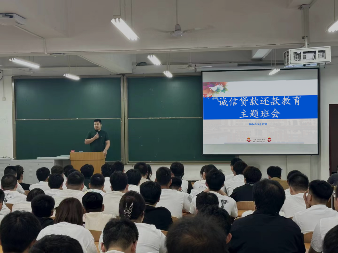 为深入推进资助育人,增强当代大学生的诚信意识和责任意识,切实落实国家助学贷款政策及还款教育,切实保障家庭经济困难学生顺利完成学业。智能工程学院毕业班于5月22日开展了以“以诚为本、以信立人”为主题的班会活动。周学材老师在本次班会中,带领学生们观看诚信教育的相关视频,随后结合PPT对助学贷款还款、征信与违约后果等相关内容进行解读,强调要增强诚信意识,做社会新青年,回报社会。