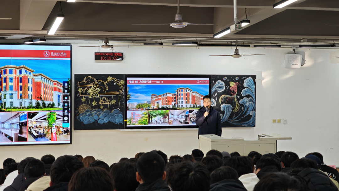 重返母校,实践启航 | 智能工程学院“重返母校”寒假社会实践动员会圆满举行 2025年12月26日,燕京理工学院智能工程学院寒假社会实践动员大会在C101教室举办。学院党总支书记冯荣普、校招生办公室韩雪老师、全体辅导员老师及23、24、25级学生代表齐聚一堂,大会由苏佳超、董鑫滢同学主持。 开场主持,点燃热情 大会伊始,主持人苏佳超、董鑫滢以活力满满的开场白点燃全场氛围,随后依次介绍出席大会的领导与嘉宾,为这场充满期待的实践动员大会拉开序幕。 政策解读,明晰方向 在主持人热情洋溢的开场介绍后,大会正式拉开帷幕。校招生办公室韩雪老师首先登台,带领同学们回顾学校的办学特色、育人理念与发展成就,深化了大家对“燕理精神”的理解与认同。随后,韩老师聚焦本次“重返母校”实践主题,从前期准备、过程实施到成果转化,进行全面细致的指导,为同学们明晰了实践方向,注入了信心与动力。 经验分享,薪火相传 “重返母校”优秀实践学生代表邵瑞带着满腔热忱走上讲台,结合自己亲身经历,生动讲述了从活动策划、沟通协调到成果呈现的全过程。她细数实践路上的挑战与成长,朴实的话语里满是真挚的感悟,引发了在场同学的强烈共鸣,通过真实案例与切身感悟,展示了实践中的成长与收获,为同学们提供了可借鉴的宝贵经验,进一步激发了大家投身实践的热情。 书记寄语,砥砺前行 学院党总支书记冯荣普在总结讲话中,对动员会的成功举办及同学们积极参与的态度予以充分肯定。她指出,寒假社会实践是拓展视野、锤炼能力的重要平台,鼓励同学们以实践为纸、以奋斗为笔,在社会课堂中锻炼自我、奉献才智,书写绚丽的青春篇章。 本次动员大会不仅明确了实践任务与要求,更搭建起交流互鉴的桥梁,凝聚起广泛共识。期待智能工程学院学子在寒假社会实践中脚踏实地、锻炼成长,彰显燕理风采,让青春在行动中绽放光芒!