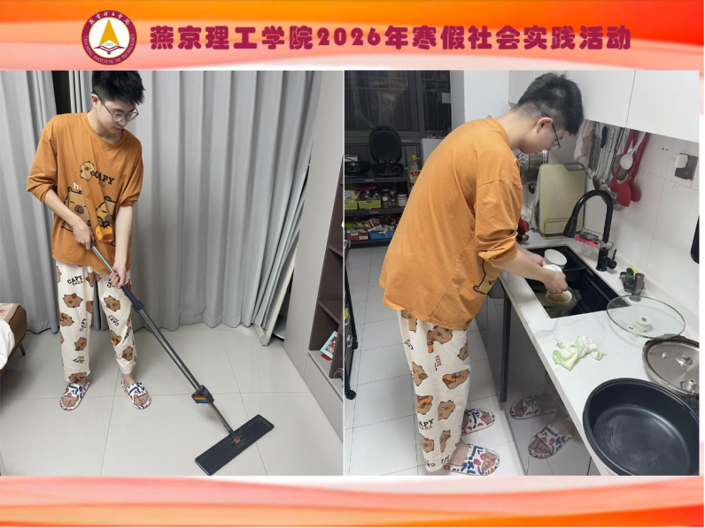 感恩于心,回报于行 | 智能工程学院2026年寒假社会实践活动——度过一个感恩家人的寒假(七) 为厚植家国情怀、强化责任担当,智能工程学院组织开展寒假社会实践活动,鼓励学子积极走向社会、投身实践。以2026年社会实践为纽带,在这个寒意渐浓却暖意流淌的寒假,智能工程学院的学子们持续践行感恩父母的社会实践,让感恩化作看得见的行动,为家庭增添温暖。 01电气2503袁泽瀚:以家务劳动书写感恩答卷 电气2503班袁泽瀚同学主动承担起家庭清洁与整理的任务。他每天早起清扫房间、擦拭家具,将杂乱的物品归类收纳,让家中环境焕然一新。袁泽瀚感慨道:“从前总觉得家务是‘小事’,如今才明白,每一件‘小事’都是父母日复一日的坚持。”他以行动证明,成长不仅是年龄的增长,更是对家庭责任的主动担当。 智能工程学院自控2502于兴轩同学,在寒假里主动为父母端上一盆温水,用为父母洗脚的方式,诉说藏在心底的感恩。他提前调试好水温,小心地将父母的脚放入温水中,轻柔地揉搓、按摩,从脚背到脚底,细细洗净每一寸肌肤,擦去脚边的水渍,动作间满是细致与温柔。看着父母因操劳略显粗糙的双脚,感受着他们放松的神情,于兴轩的心中满是触动。 电气2502班刘国辉同学化身“家庭大厨”,从买菜、备菜到烹饪全程亲力亲为。他虚心向父母请教火候掌控,最终为家人端上了一桌热气腾腾的饭菜。当看到父母夹起他炒的青菜时脸上洋溢的笑容,刘国辉眼眶微热:“原来让父母开心这么简单,只要用心做好一顿饭。”从手忙脚乱到游刃有余,他在烟火气中读懂了“家”的味道,更明白了“感恩父母”的分量。 此次寒假社会实践活动,智能工程学院的学子们通过扫地、做饭、洗衣等平凡家务,将感恩之心转化为具体行动。他们用双手减轻父母的负担,用细节传递亲情的温度,在实践中深刻领悟到:家庭不仅是成长的港湾,更是责任与爱的课堂。未来,学院将继续引导学子将这份温情延续至日常生活,以青春之力守护家庭温暖,让感恩之花在青春岁月中持续绽放,为构建和谐社会注入青春能量。