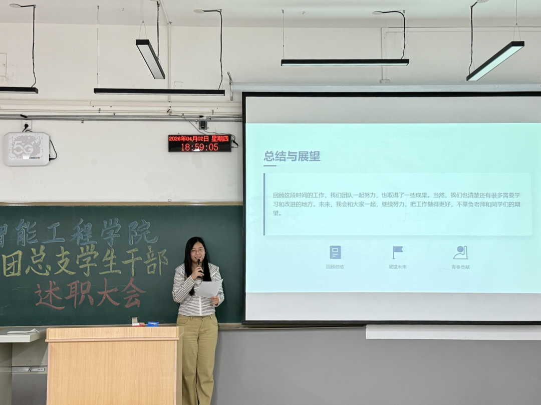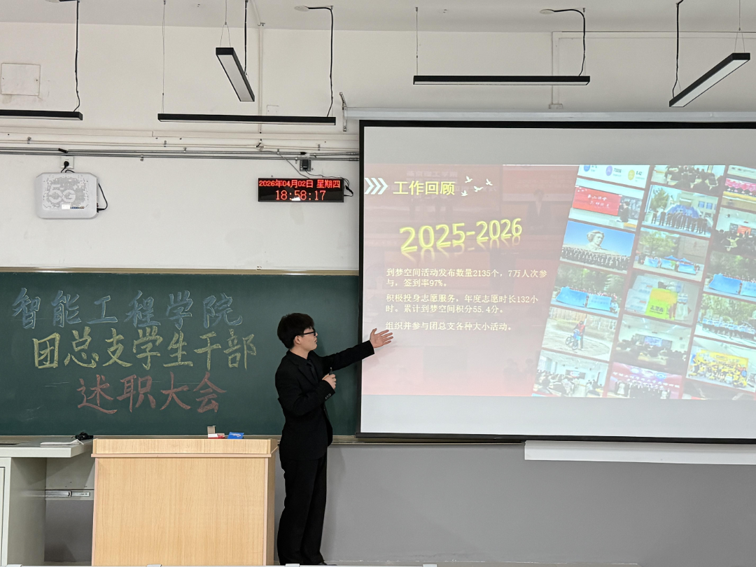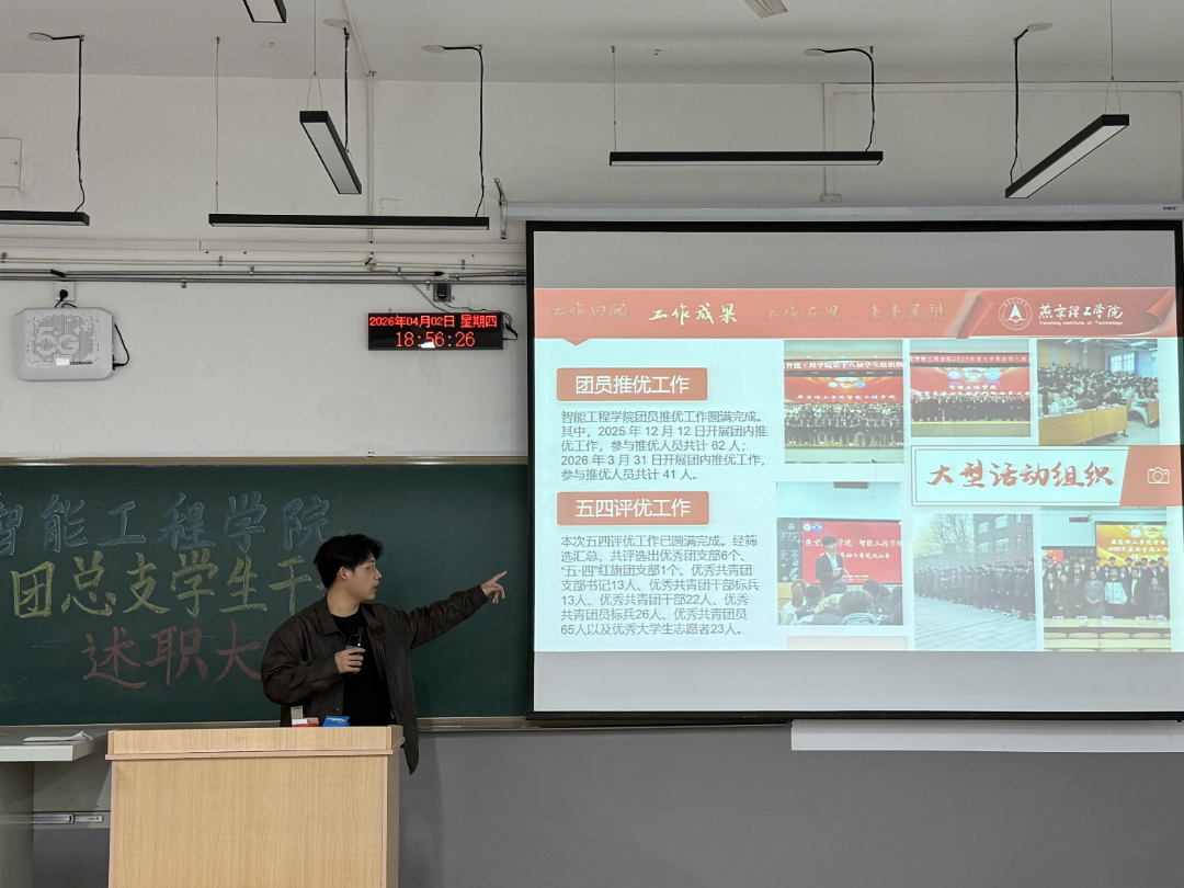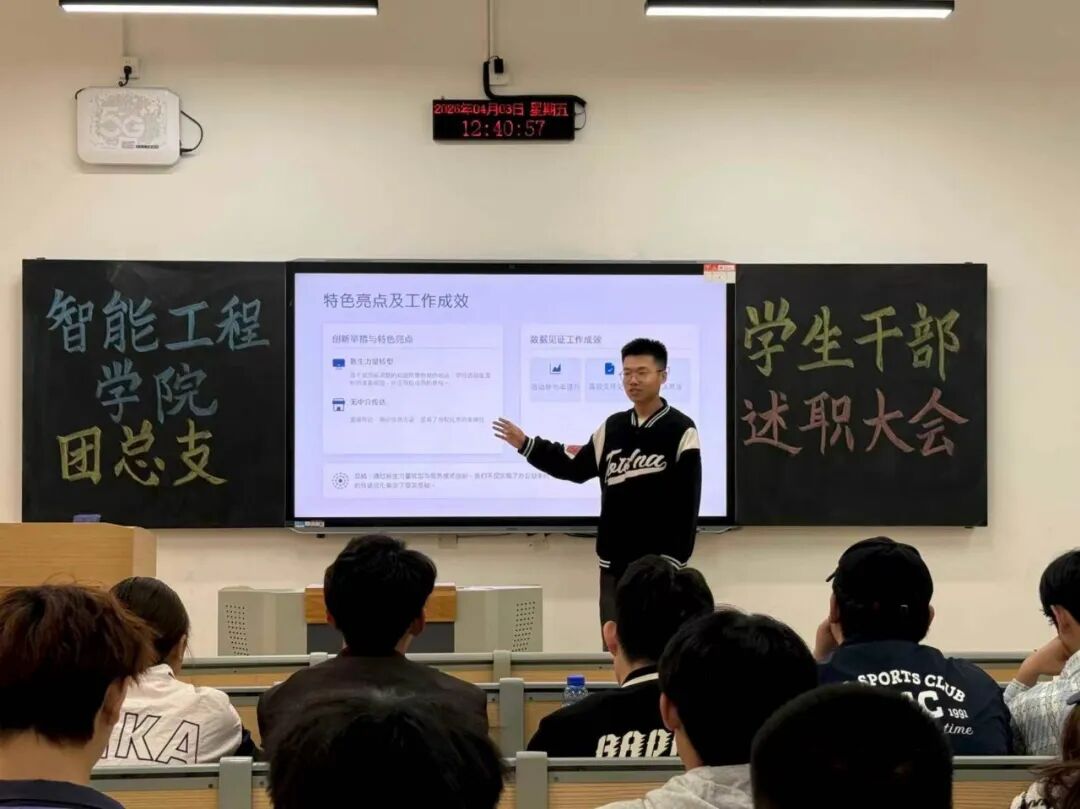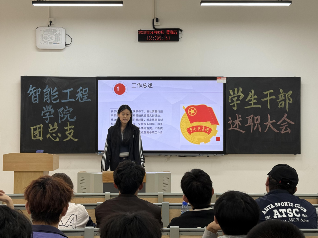总结过往砺初心,笃行奋进新征程 | 智能工程学院团总支述职大会圆满召开 为全面梳理本学期团总支各项工作的成效与不足,明确新学期工作思路、压实工作责任,切实提升团学工作质量,近日,智能工程学院团总支述职大会在C203和K3-203教室顺利召开。学院团总支指导老师王珊出席会议并作总结指导,团总支大二各部门逐一进行述职汇报,全体大一部员到场参会、认真学习,共同回顾过往、谋划未来。 夯实团务根基 凝聚组织力量 团务部聚焦团员管理核心职责,扎实推进各项基础工作落地见效:规范完成全院一千余名团员的团费收缴工作,做到账目清晰、收缴及时;精准完成团员信息录入、更新及团组织关系转接,确保团员管理规范化;组织开展优秀团员评选活动,强化团员先锋模范作用。针对工作中的衔接不畅问题,本学期该部门将进一步优化工作流程,建立与各班级团支部的常态化沟通机制,提升工作效率。 夯实组织建设 凝聚青年力量 组织部统筹推进各类团学活动,切实丰富青年学生校园生活。本学期以来,成功策划组织“学雷锋主题团日”“红色经典诵读”等主题活动;今后,组织部将结合智能工程学院专业特色,创新活动形式,加强部门间协调配合,提升活动组织统筹能力和学生参与度。 深耕宣传阵地 点亮智能风采 宣传部坚守思想宣传主阵地,全方位展现学院团学工作风貌与青年学子风采。活动期间,安排专人负责摄影摄像;设计活动海报、宣传展板、撰写活动推文,通过学院官方公众号发布,及时传递团学工作动态、弘扬正能量。针对推文质量参差不齐、传播力不足的问题,本学期将加强推文撰写培训,结合学院专业特色优化内容呈现,进一步提升宣传实效,讲好青年故事。 做好服务保障 彰显文礼风采 办公室承担团总支后勤保障核心职责,全力确保各项工作有序运转。严格落实日常值班制度,处理日常事务;规范做好文件归档、物资管理工作,保障各类活动顺利开展;精准做好会议记录,为工作复盘提供有力支撑。本学期,办公室将进一步完善内部管理制度,明确部员岗位职责,加强与其他部门的衔接配合,提升整体运行效率。 执笔传声聚力 护航团学发展 秘书部主要承担文案撰写、资料整理、会议及活动礼仪培训等工作,规范团总支文字材料与形象展示。今后,该部门将进一步提升文案撰写专业度,细化资料归档分类,丰富礼仪培训内容,助力团总支树立良好形象。 细化二课管理 服务学生成长 第二课堂管理部严格落实学校第二课堂学分管理要求,扎实做好学分审核、活动认证、信息录入等工作。针对部分学生对二课学分规则不了解、申请流程不熟悉的问题,本学期将简化申请流程,开展二课学分宣讲活动,提升工作效率与学生满意度。 总结指导明方向 砥砺奋进新征程 各部门述职结束后,王珊老师作总结指导,充分肯定了各部门本学期的工作成效,对全体学生干部的辛勤付出表示认可,同时结合述职内容,直指工作中存在的细节疏漏、部门衔接不畅、创新不足等问题,并逐一提出具体改进建议。她强调,全体学生干部要强化责任意识、服务意识,注重工作细节,杜绝形式主义;要加强部门间协作配合,形成工作合力;希望大一部员虚心向学长学姐学习,快速熟悉工作内容,主动担当作为,提升自身能力。 此次述职大会,既是对过往工作的全面复盘,也是对新学期工作的明确部署,有效凝聚了团总支工作合力、明晰了发展方向。未来,智能工程学院团总支将以此次述职为契机,不忘初心、凝心聚力,补齐工作短板,强化责任担当,以更务实的作风、更有力的举措,推动团学工作再上新台阶,切实服务青年学生成长成才。